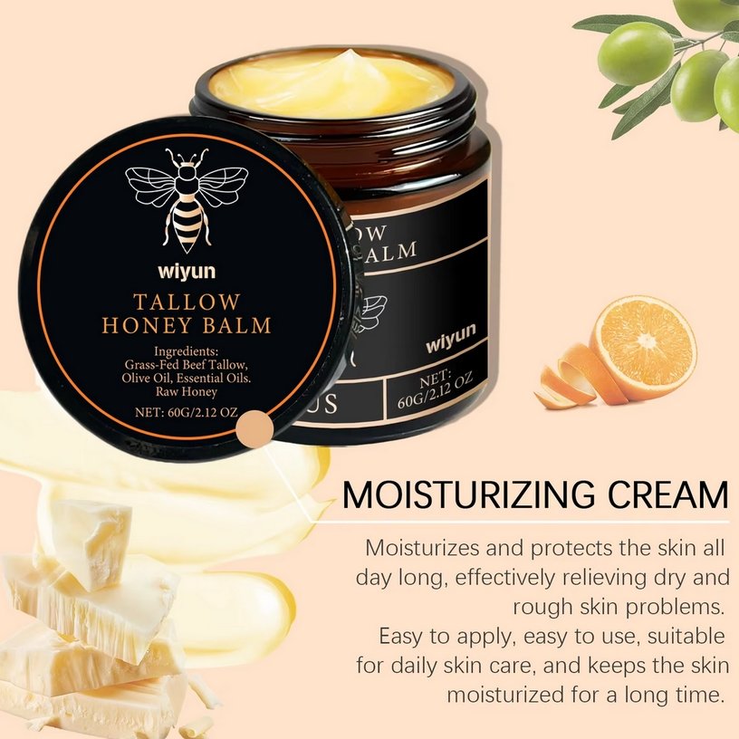 Made with nourishing tallow and soothing honey, this moisturizer melts into the skin for long‑lasting hydration and a natural, healthy glow. The rich texture softens dryness, supports a smoother feel, and leaves your skin looking fresh and well‑kept — perfect for daily routines, no‑makeup days, or anyone wanting that clean, radiant finish.